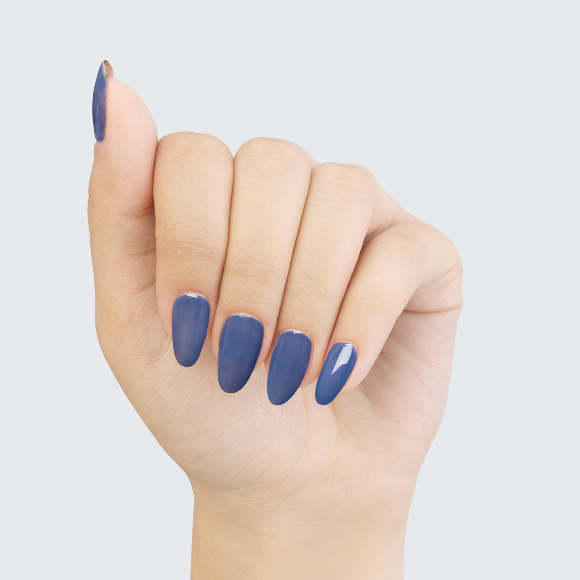 This warm blue polish is overcast with a lovely grey tint.